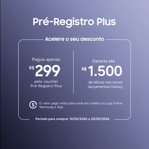 O valor de R$299 retornará para você em forma de crédito para ser utilizado na Loja Online Samsung e App em compras futuras, com validade de 90 dias a partir de sua aquisição.